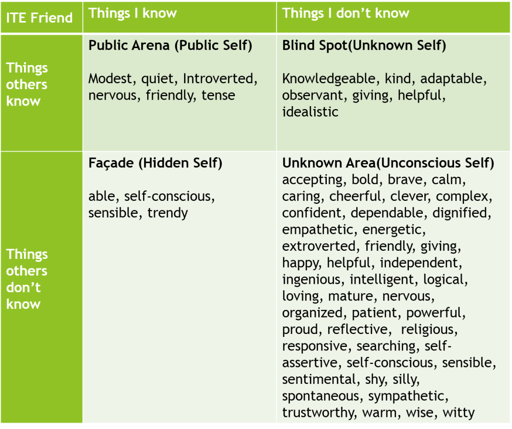 This is a Johari Window done by my classmate